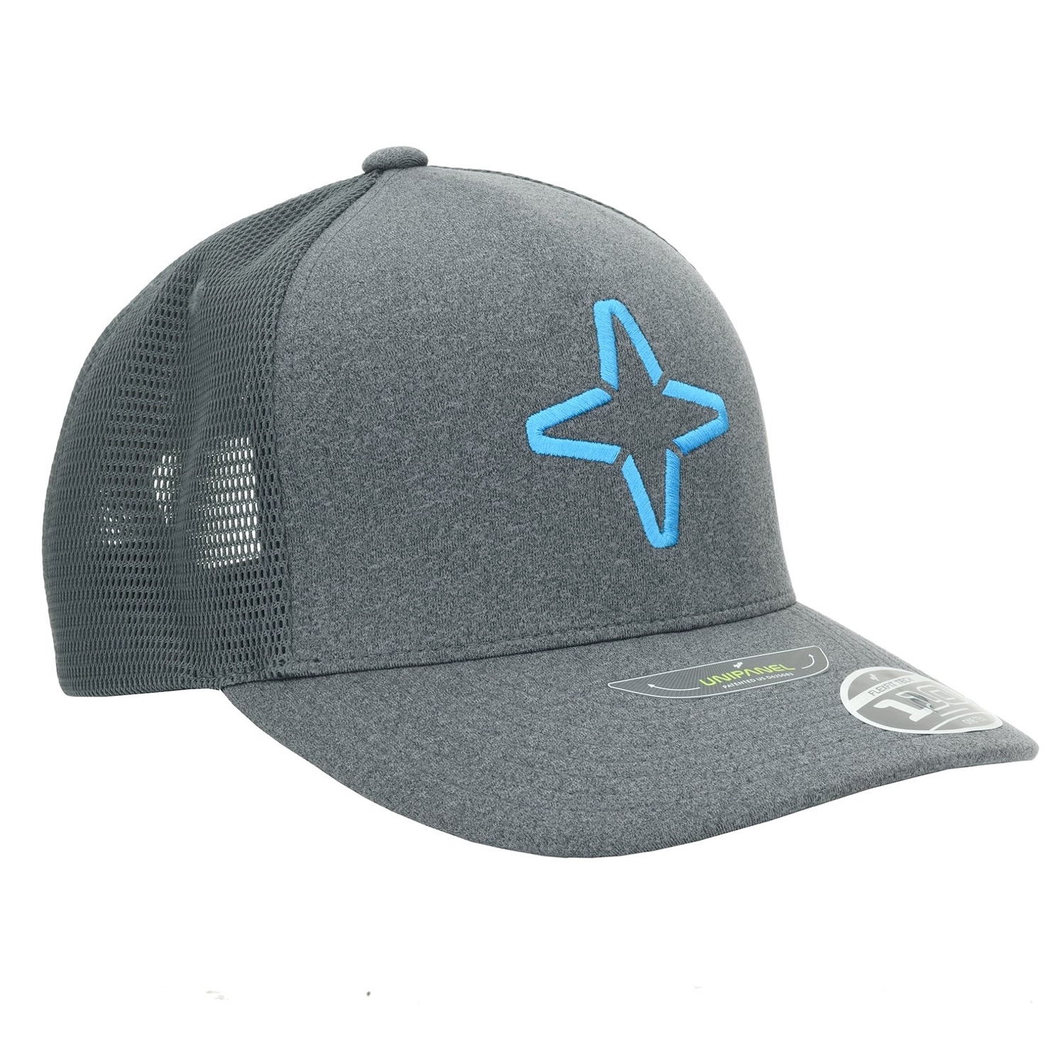 AAVA Nordic Star Cap Grey - A perfect fit is guaranteed with the Aava Star Is Born-cap with it having both snap back for adjusting the size and a stretchable Flexfit® headband. Because of this unique design it is the most comfortable cap. This is a trucker cap with elastic mesh panels. The front panel has a patented unipanel technology and it has no seams in the front.
