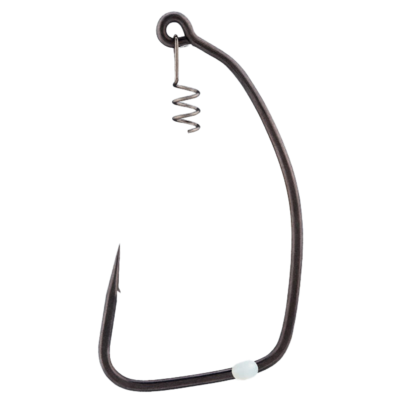The hook is equipped with a locking spring that securely holds baits in place and allows anglers to easily add or remove soft baits.
