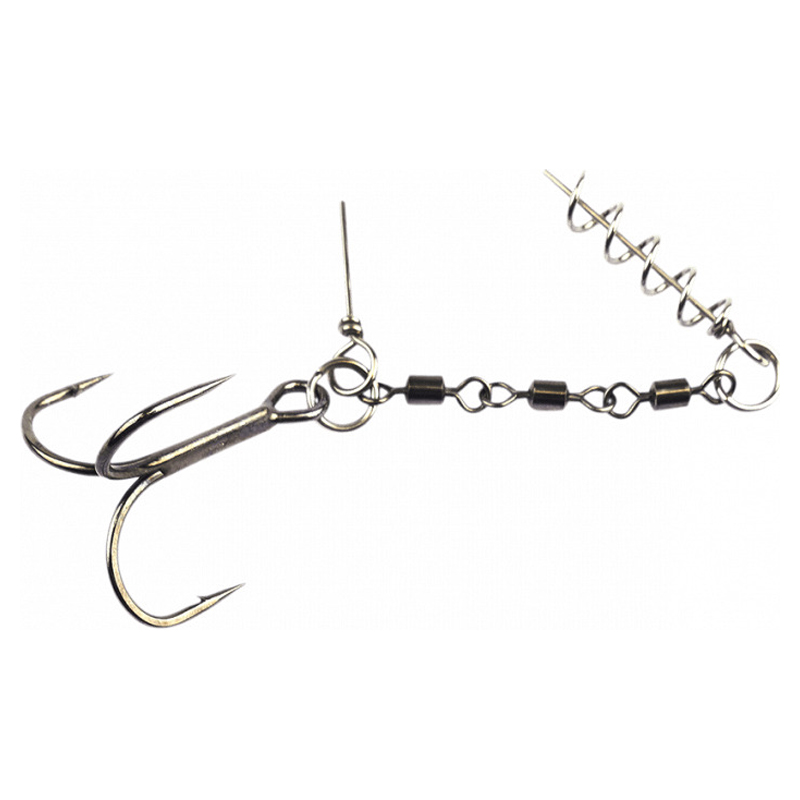 Complete rig for your large rubber lures! Connected swivels with rings, hooks and shallow screw! Available in three different sizes!