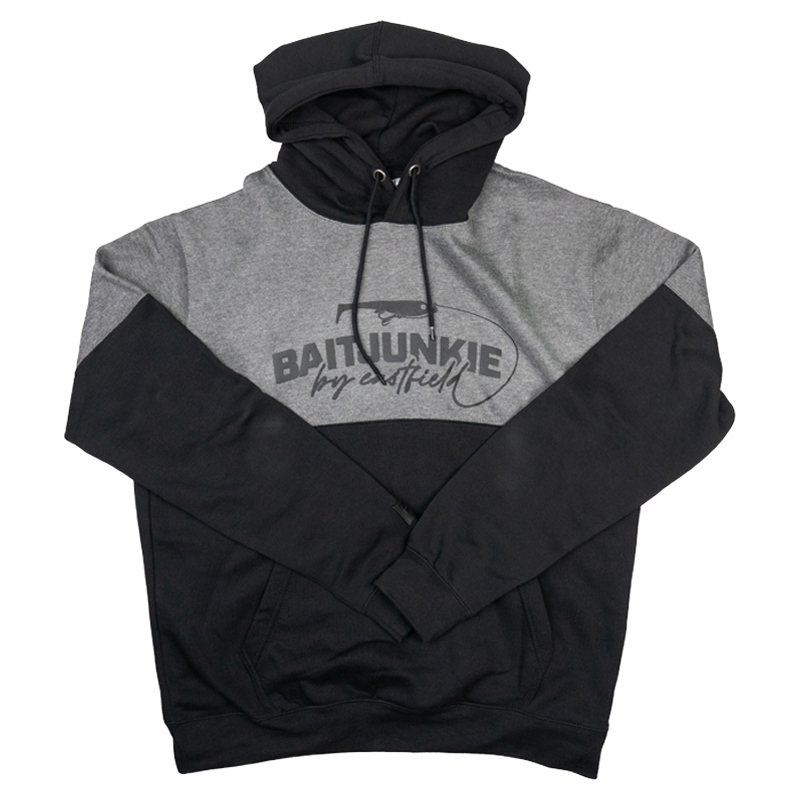 The Eastfield Baitjunkie Hoodie Black/Grey is a hoodie with a Baitjunkie by Eastfield logo on the front and EFL logo on the back. Hoodies that give you the extra mojo you need on the water!