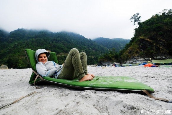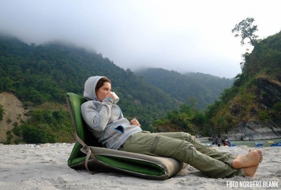 The Exped Chair Kit MW allows you to convert your sleeping mat into a comfortable chair while also protecting it from wear. For those looking to reduce weight, the cover can be used without the poles and straps, bringing the weight down to around 195 grams. The chair offers great comfort and can be used in various positions, either as a regular chair or lounger. With its insulating ability, it keeps you warm even in snowy conditions.