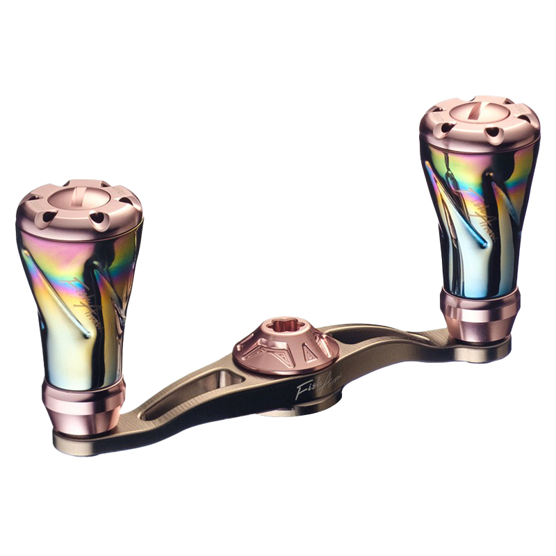 By using Libre's unique center nut, winding wobble is eliminated, and a hollow titanium knob is used, and the plate is 3D-cut from extra super duralumin, achieving high precision, high strength, and light weight. By purposely suppressing the winding torque with a short handle, the information transmitted from the small lure is delivered to the angler. The color of the knob is finished in a fire aurora color that matches everything from the latest bait finesse reels to ABU's old reels. In addition, the pink model's center nut, aluminum color knob, and end cap are a cute pink that is not too flashy and looks great in mountain streams.
