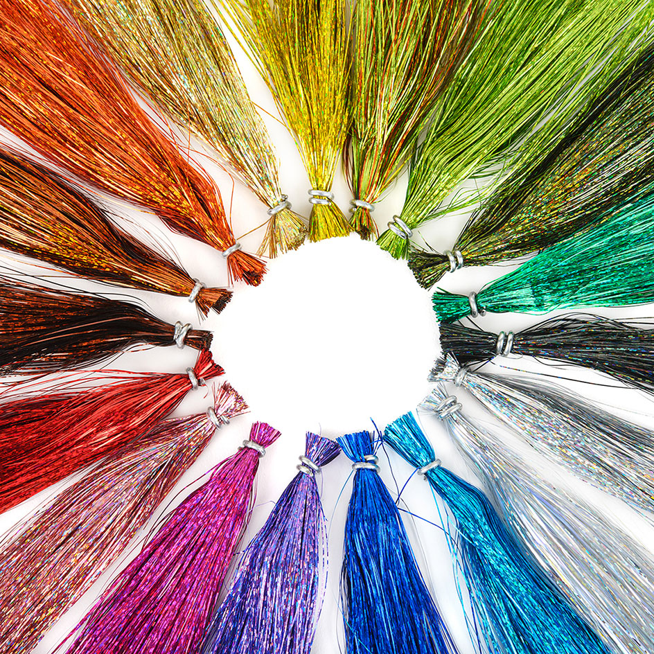 The original in glitter material, the holographic flashabou is incredibly nice for all kinds of streamers, saltwater flies and salmon flies.