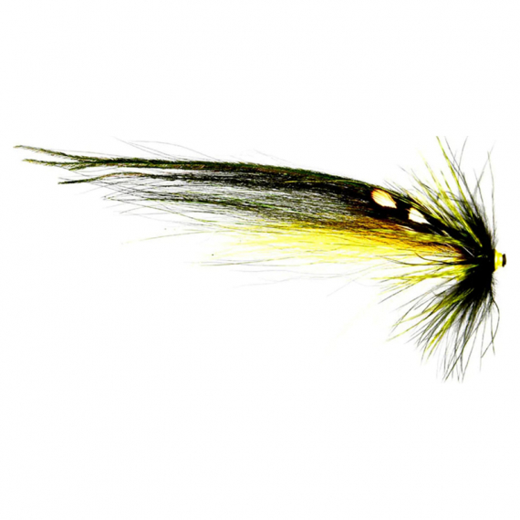 The classic black and yellow colour combination, the combination from the best-known fly of them all – The jock Scott. This little light modern version is a superb over all general pattern that will work under almost all conditions. We have taken many fish on black and yellow flies and together with Hamilton this is the pattern we choose. We fish it with a black & silver or willie gun body or a bare black or Fl. yellow FITS tubing.
