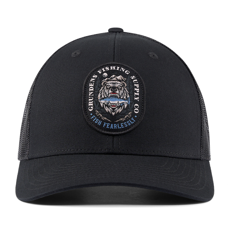 The Bear Essentials trucker hat embodies a natural angler’s spirit with its comfortable, laid-back style and skillful fish-slayer graphic.