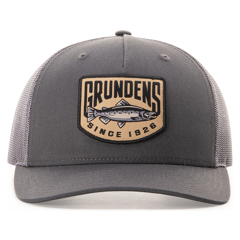 Grundéns King Trucker Charcoal - Classic, mid-crown trucker hat with an adjustable snapback closure. Offering a high-impact Grundéns King Salmon design on an authentic Richardson cap.
