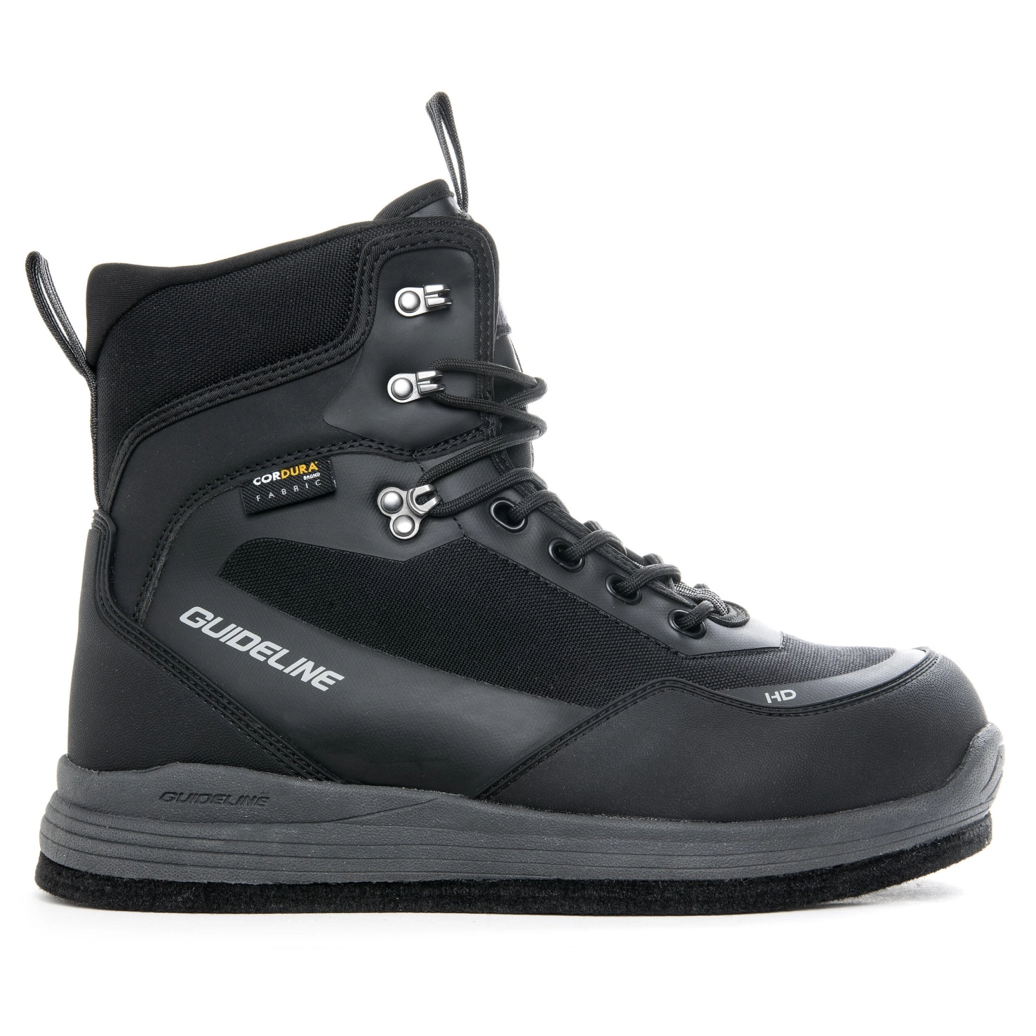The Guideline HD (Heavy Duty) Wading Boot is designed to be used in the most difficult conditions. Due to its extra height, thicker padding and extra stiffness in the material, these boots have increased stability to help you when wading on difficult bottoms or walking in unpaved terrain.