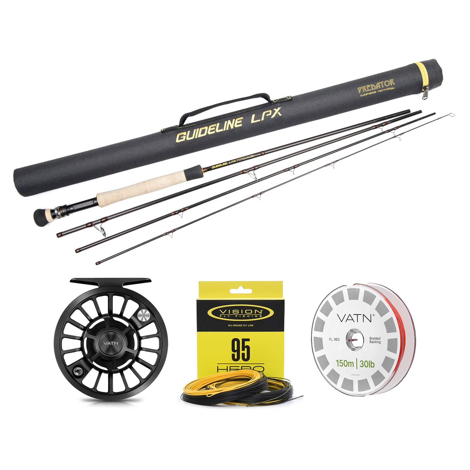 High-performance streamer fly fishing set built for predator action. Featuring the LPX Predator rod, VATN M2 reel, Hero 95 Sink3 fly line, and durable backing.