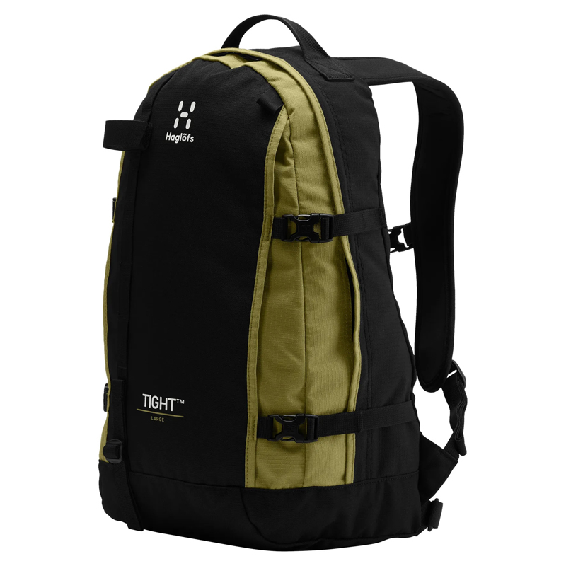 Haglöfs Tight Large True Black/Olive Green - The new generation Tight backpack combines recycled materials with a distinctive, iconic design. The backpack's teardrop-shaped front and side panels provide a low center of gravity, making it perfect for all kinds of activities. As the name suggests, the backpack fits snugly around your back, thanks to the shape of the straps and the ergonomically shaped back panel. Equipped with extra carrying points and smart features.