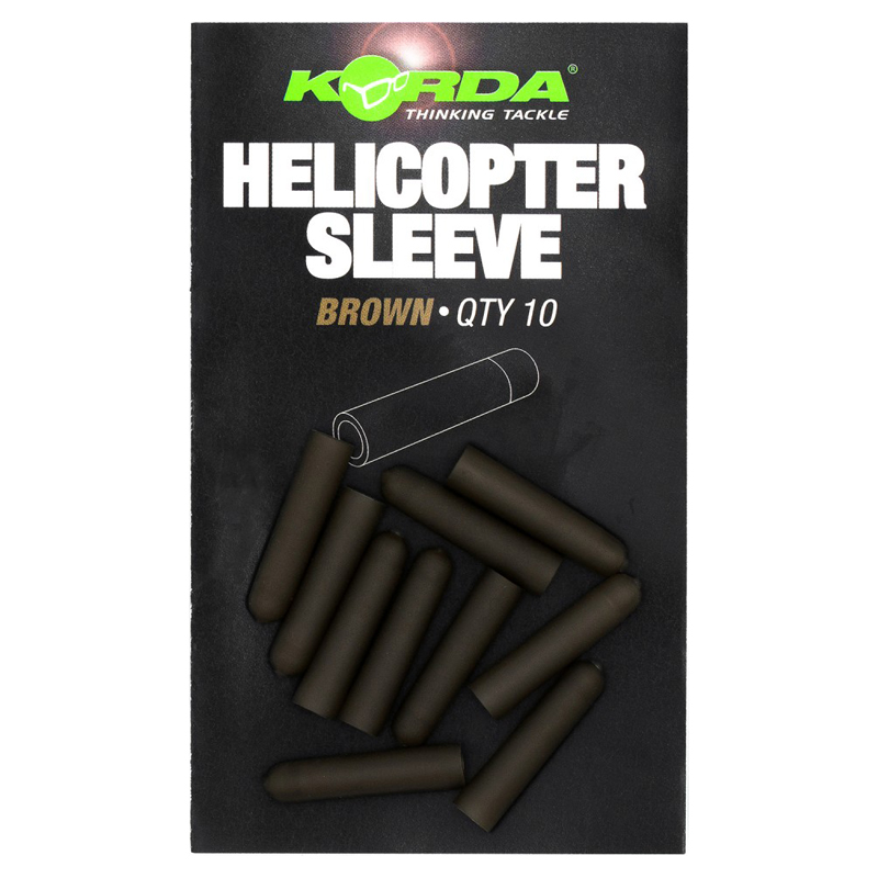 This rubber sleeve securely grips the Kwik Link and lead swivel, keeping everything in place during use. It can be used with leaders or as part of a naked chod setup. The Heli Sleeve also helps prevent tangles, and its rounded end ensures the hook link swivel sits neatly against it. Available in green or brown, in packs of 10.
