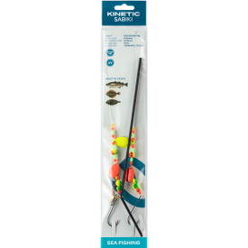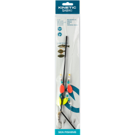 This colourful rig, with spinner blades is extremely popular, especially on clean bottom. The sliding boom gives direct contact, even with heavier sinkers.
