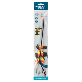 Perfect for bottom fishing, the colorful rig features spinner blades, beads, and floats that attract fish like cod, turbot, and sole. The sliding boom system ensures direct contact, allowing you to feel every bite for improved results. Made with quality nylon line and equipped with chemically sharpened black nickel hooks, this rig is a durable and effective choice for anglers.