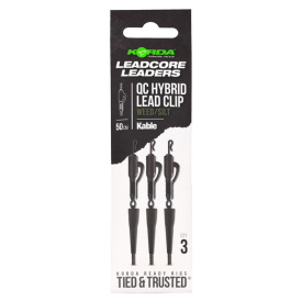 Each pack contains three Kable Hybrid Lead Clip Leaders, available in Weed/Silt or Gravel Brown.