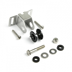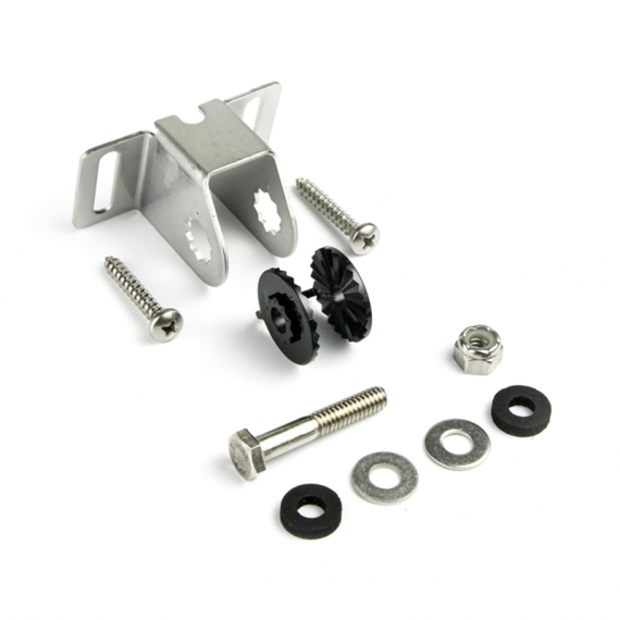 Stainless bracket for transom mounting a TripleShot skimmer transducer.
