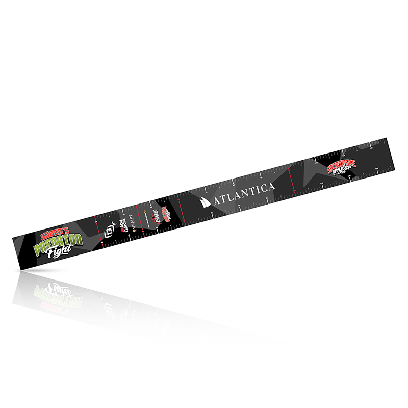 The official measuring sticker used by the teams in Predator Fight! Clear markings for approved fish according to the rules of the competition; 30cm perch, 45cm zander, 60cm pike. Total length: 135cm.