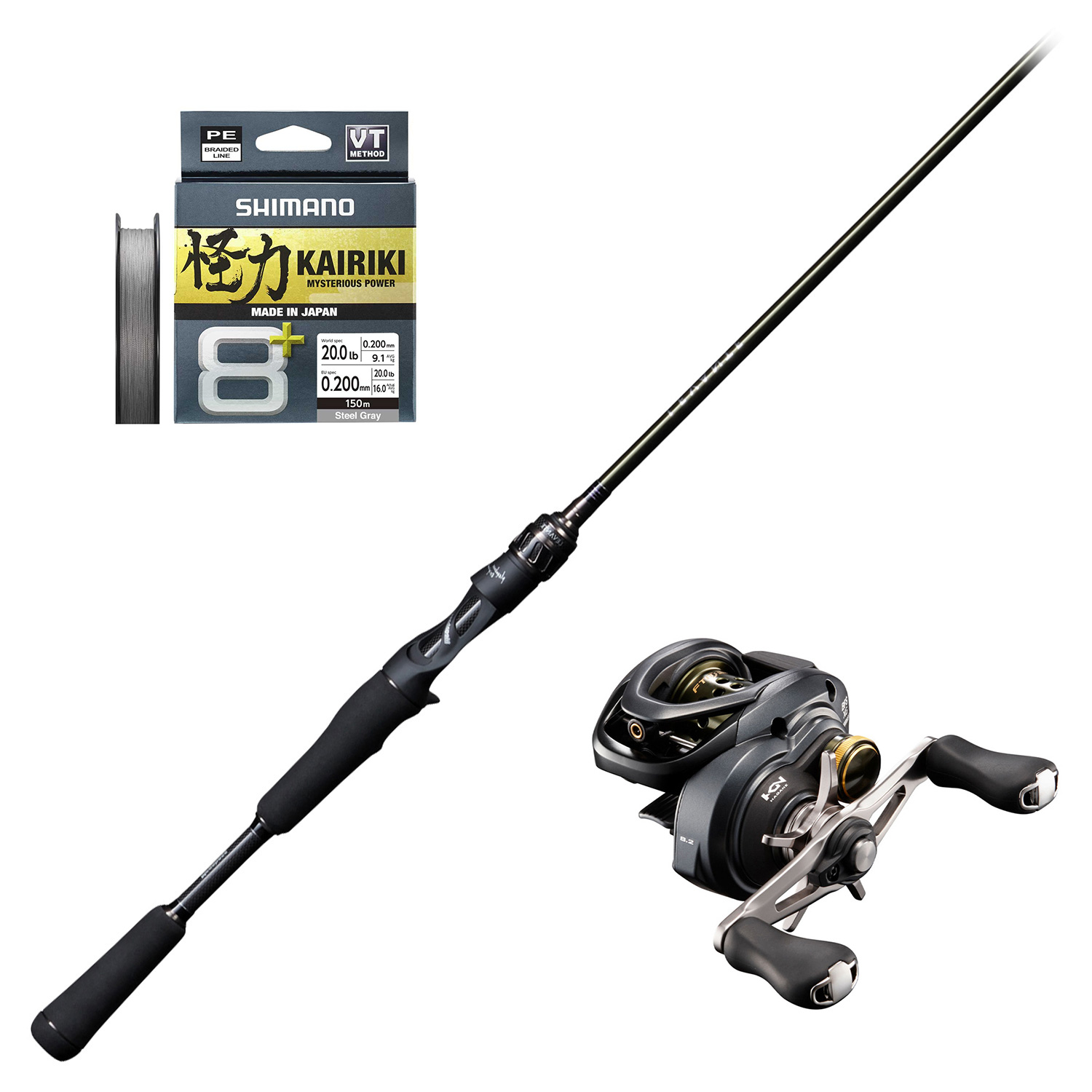 Megabass Levante JP F3-67LV 3.5–14g features an aggressive tip and ultra-responsive blank for finesse-style presentations. The Shimano Curado BFS XG baitcaster excels with light rigs thanks to its lightweight HAGANE construction and buttery-smooth X-Ship drive. Topped off with Shimano Kairiki 8+ 0.10 mm braid for ultimate casting precision.