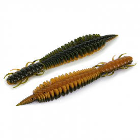 The new SWD Worm is the closest Dragonfly imitation from the Italian designs of Molix Workshop. It features double thickness flaps to enhance the floating power. The heavy density plastic mix increase casting distance and lifelike legs that trigger aggressive bites during steady retrieves. The SWD Worm is two baits in one, just cut the head to use it as an insect and the body as jig trailer. The SWD Worm can be used swimming, Texas rig or with your favorite jig and jig head.