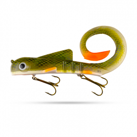 Bull Dawg is a big fish bait of the highest order with an insane number of big pike and muskies on his conscience. The horizontal, flat-bottomed design allows the lure to be trolled and spun even at higher speeds and gives the lure a wide profile from below. A popular way of spinning Bull Dawgs is with sweeping rod movements to cover several layers of water and give the bait a varying speed. Can also be rigged with a stinger rig with treble hooks on the back and a light sinker on the belly to avoid snags when fishing close to the bottom.