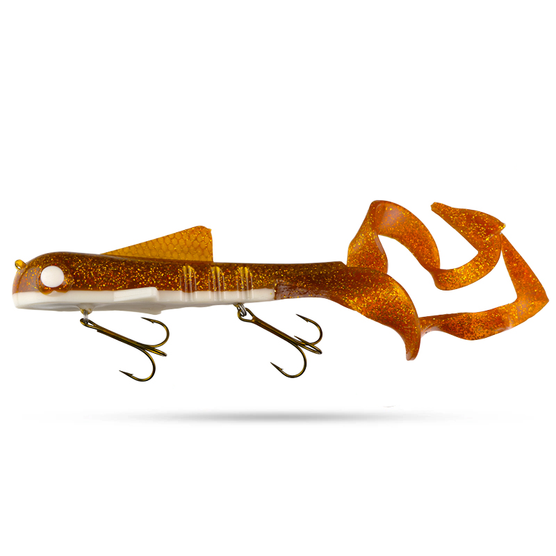 Bull Dawg is a big fish bait of the highest order with an insane number of big pike and muskies on his conscience. The horizontal, flat-bottomed design allows the lure to be trolled and spun even at higher speeds and gives the lure a wide profile from below. A popular way of spinning Bull Dawgs is with sweeping rod movements to cover several layers of water and give the bait a varying speed. Can also be rigged with a stinger rig with treble hooks on the back and a light sinker on the belly to avoid snags when fishing close to the bottom.