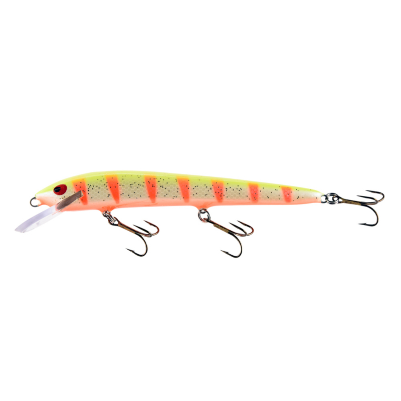 The Invincible Pro is handmade from abachi wood in Kalkkinen, Finland and hand-painted with UV details. Each wobbler is individually handled, checked and adjusted by hand before leaving the factory. All Nils Master Invincible Pro have UV colors.