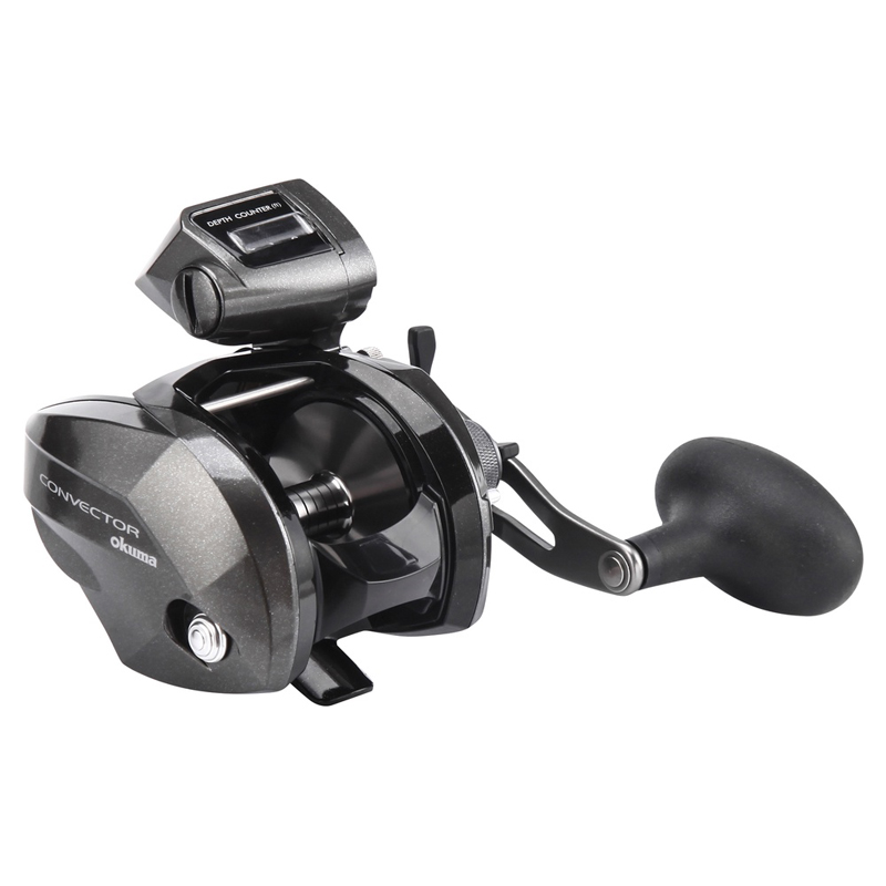 Low profile line-counter trolling reel with clever Quick Drop Switch function. When switch ON, press the thumb bar to release the spool. Leave pressure on thumb bar and the spool is reengaged. Simply brilliant.