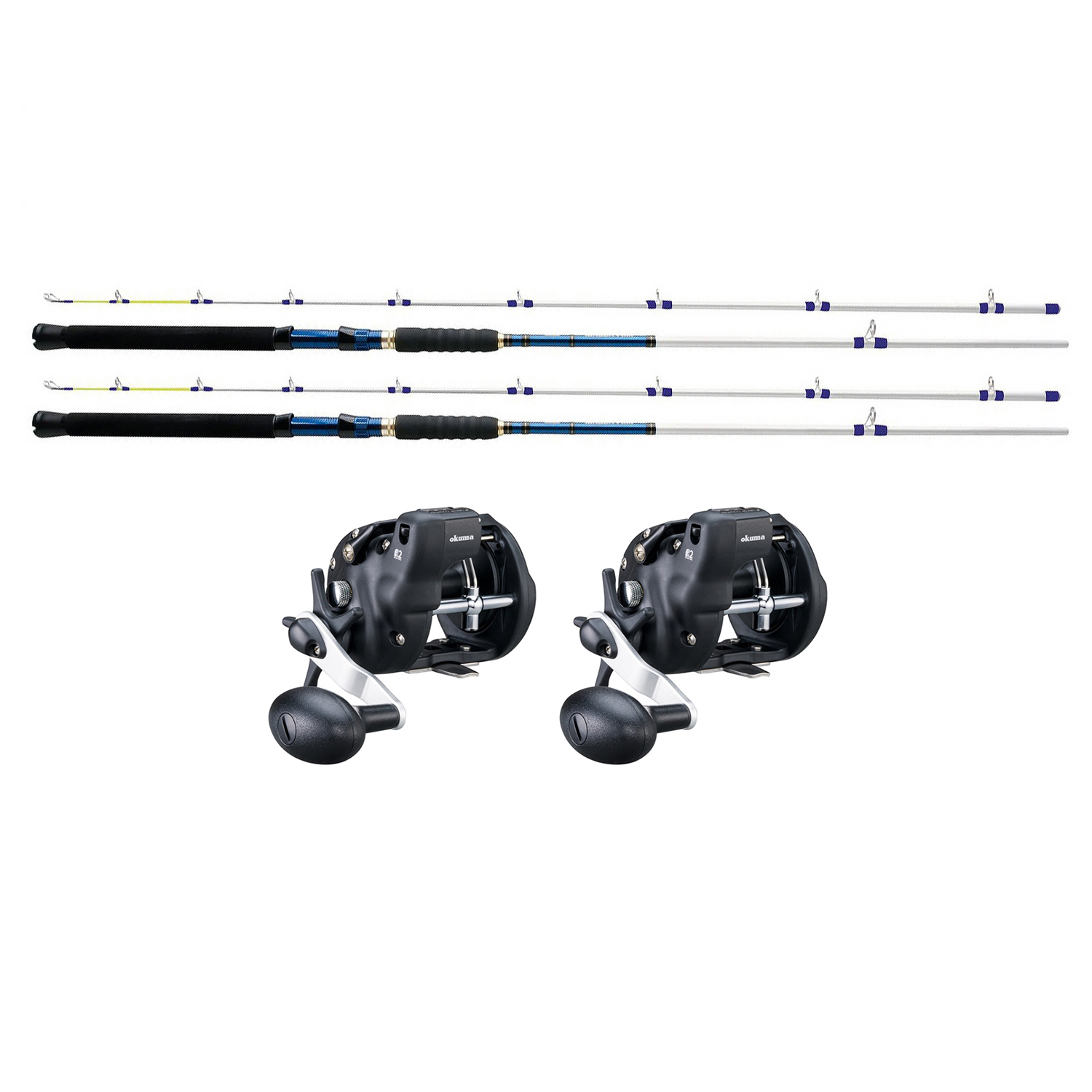 The Magda Finn Trolling 70" (15–30 lbs) rod is paired with the Okuma Magda Pro 20DXT, creating a reliable setup for demanding trolling. The fiberglass construction provides strength and flexibility, bending deep while still delivering enough power to control big fish. Equipped with a cross butt, the rod fits securely in rod holders, making it ideal for paravanes, downriggers and heavier lures.