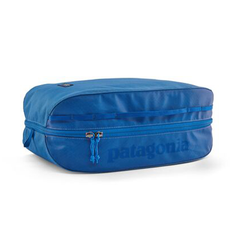 The Patagonia Black Hole Cube Endless Blue 14L organizes essentials with ease, using 100% recycled materials for durability and environmental impact reduction.