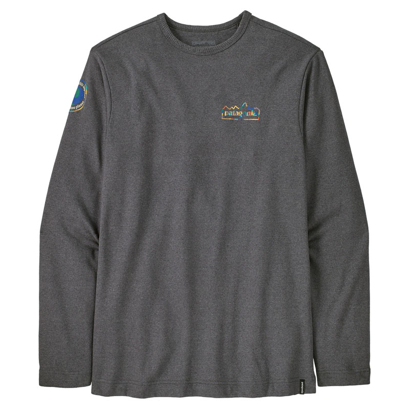 Patagonia M's LW Unity Fitz Wildrise Crew Ink Black - Our Unity Fitz design features a stylized Earth and the message We're all in this together, along with the essence of our mission statement, Save our home planet. Textile waste is a global issue, so our Wildrise styles are made from a blend of recycled cotton and Naia® Renew, sourced from post-industrial waste. Soft, comfortable, and durable, this lightweight crewneck sweatshirt is versatile and ideal for year-round wear. Made in a Fair Trade Certified™ factory.