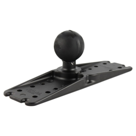 The RAM-D-111BU, universal mounting plate, consists of a 2.25" diameter rubber ball, connected at right angles to a flat 11 x 3" rectangular plate.