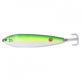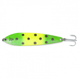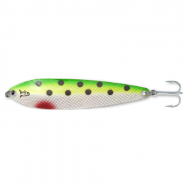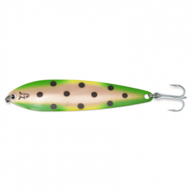 An unusually heavy trolling spoon with a somewhat thicker blade and a fascinating, unconventional action.