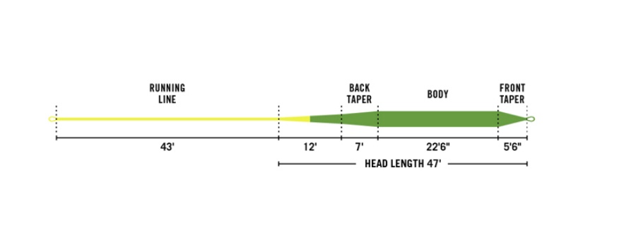 RIO Premier Gold has a 13.7 to 15.2 meter head, which provides excellent stability on long casts. The short front taper makes it easy to turn over long leaders and heavier flies. The SlickCast coating minimizes friction, allowing for longer casts and improved durability. Tests show that this coating lasts 140% longer than competing lines and resists cracking by 33%, making it an excellent choice for both delicate dry fly fishing and heavier streamer applications.