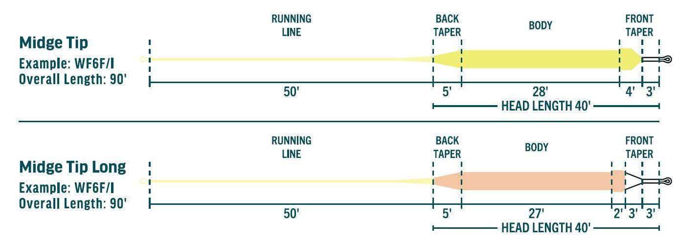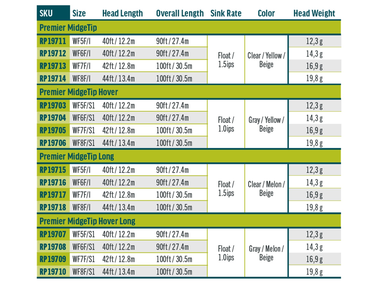 The Rio Midge Tip fly line is specifically designed for lake anglers looking to target fish in the top water column. Featuring a floating main line and a sinking tip, it comes in clear intermediate (3ft or 6ft, sinking 1.5 inches per second) or hover (sinking 1 inch per second) options. This line excels in shallow bays, windy conditions, or when fishing over weed beds. Equipped with a Coldwater core, SlickCast coating, and welded loops at both ends, it offers durability, smooth casting, and fast rigging. A must-have for effective stillwater fishing.