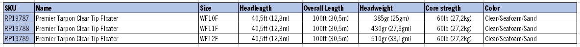 The Rio Premier Tarpon Clear Tip Float is a high-performance fly line with a clear 10ft tip for targeting wary tarpon.