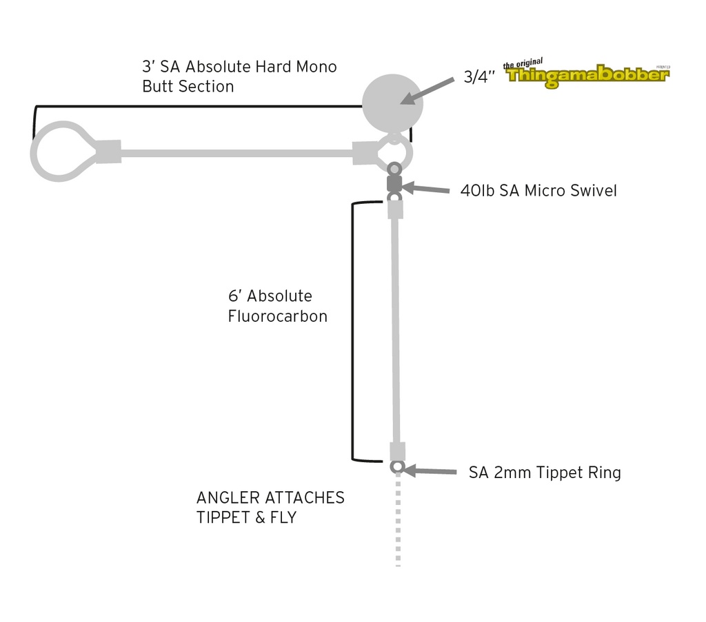 The SA Absolute Right Angle leader is specifically designed for nymph fishing in fast-moving water, helping you get the fly to the right depth quickly. The leader consists of two parts: a stiffer nylon butt and a thinner fluorocarbon tip, connected by a floating indicator. This combination provides the best angle for detecting strikes. The leader comes with a loop on the back end and a tippet ring on the front for attaching your leader material.