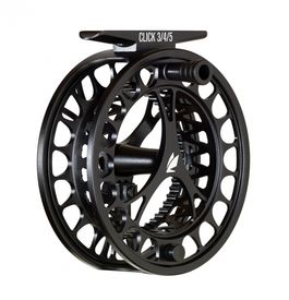 The enhanced CLICK features larger arbor diameters creating a larger palming area for fighting fish and quicker line retrieval while maintaining backing capacities. The CLICK aesthetic has been elevated through new hole patterns and a refreshed, modern design that speaks to its lightweight and minimalist yet functional characteristics. The proven performance of the adjustable click and pawl drag design of the original is featured in this new CLICK reel series.