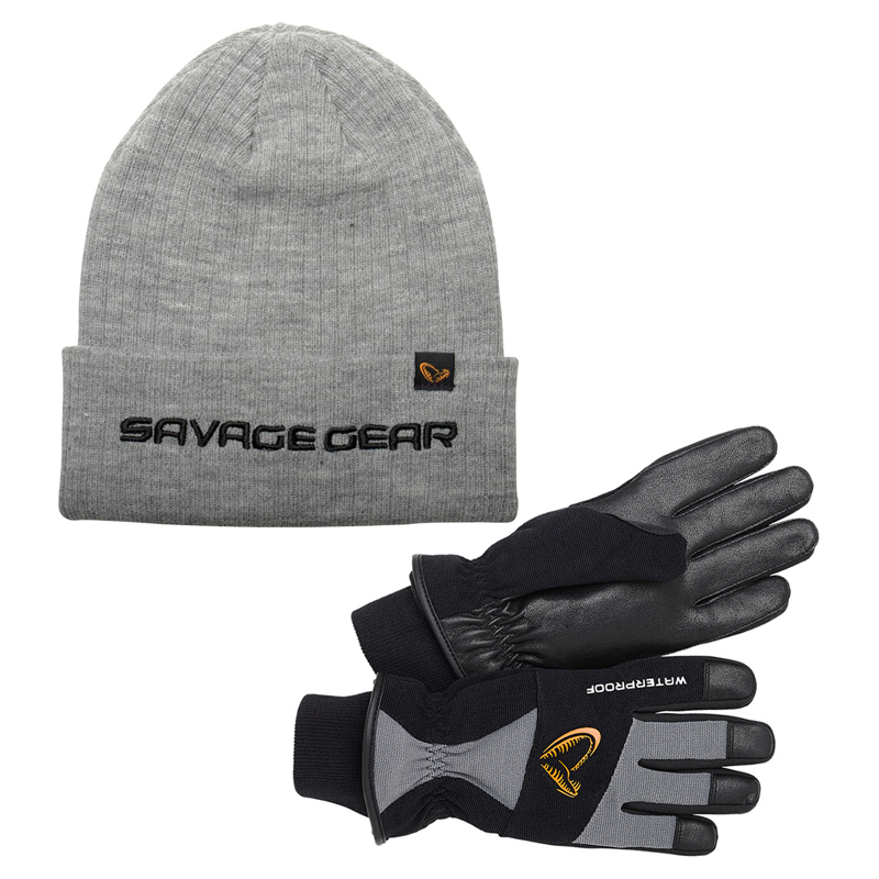 A set with the waterproof and insulating gloves Thermo Pro Glove and the comfortable hat Fold-Up Beanie from Savage Gear. An affordable set for spring, fall and winter fishing.