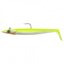 With a lively kicking action on both the drop and the retrieve, this super realistic sandeel imitation will fool even the wariest of predator fish. The unique jig head helps to ensure the lure moves with a perfect rolling and darting action. The Pro Peg body holder makes it possible to peg the body to the head with a toothpick, creating a very simple and secure hold. The soft PVC body comes pre-rigged with an internal glass rattle that gives off a provoking sound to any nearby hunting fish.