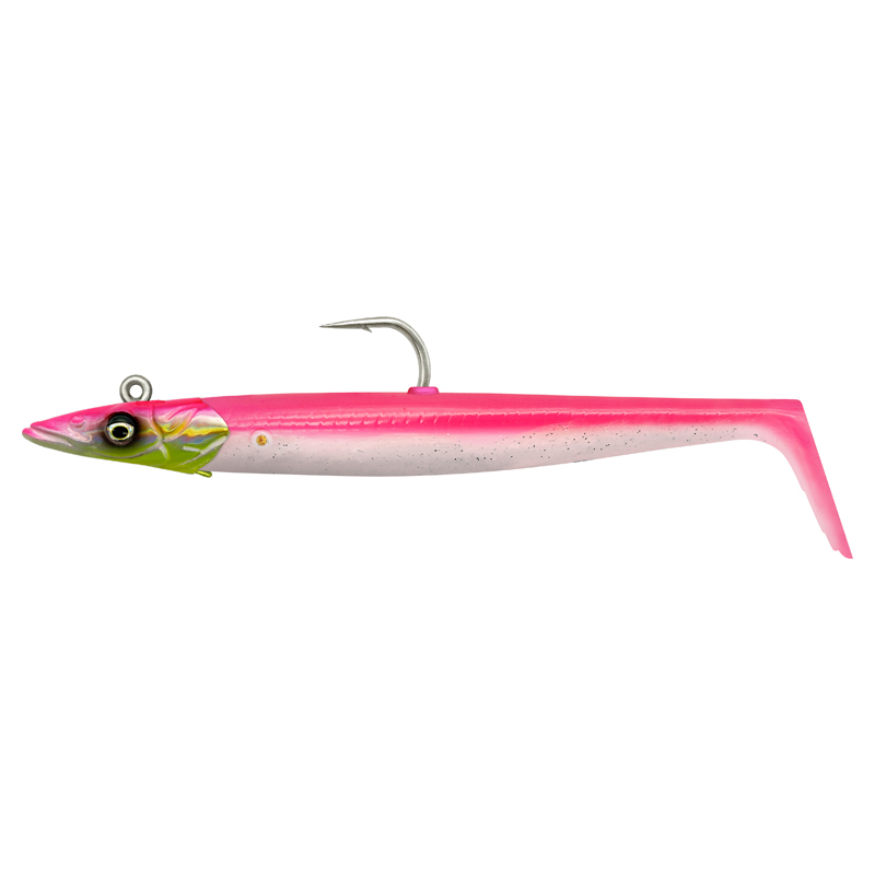 With a lively kicking action on both the drop and the retrieve, this super realistic sandeel imitation will fool even the wariest of predator fish. The unique jig head helps to ensure the lure moves with a perfect rolling and darting action. The Pro Peg body holder makes it possible to peg the body to the head with a toothpick, creating a very simple and secure hold. The soft PVC body comes pre-rigged with an internal glass rattle that gives off a provoking sound to any nearby hunting fish.