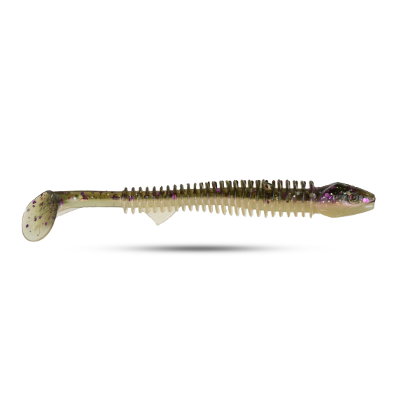 The Scout RibKick is a 9 cm long super soft, ribbed worm jig with paddletail that can be fished at ultra-low speed without losing its kicking action.