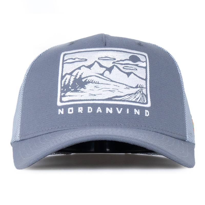 Explore the limited edition SQRTN Nordanvind Trucker Cap in Grey. Featuring a stylish pre-curved visor and intricate embroideries.