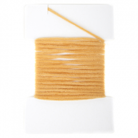 It is made with a particular glued core that prevents the loss of fibres. It can also be use for ribbings on medium to large sized flies.