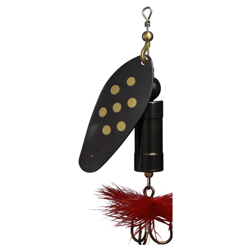 Tuna-Lax is a heavy and very easy-to-cast spinner. A concentrated body allows the spinner to be thrown with insignificant resistance. The polished body gives good reflections. The spinner is equipped with an attractive feather-hook.