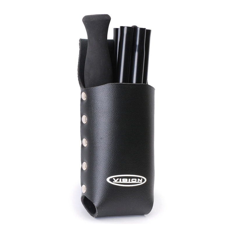 It straightens out automatically when removed from its holder. It has an ergonomically shaped EVA-handle and double elastic strap for a good grip wet and dry. This handle is also much more durable than traditional cork handles. Total length as open 59” and closed 10”.