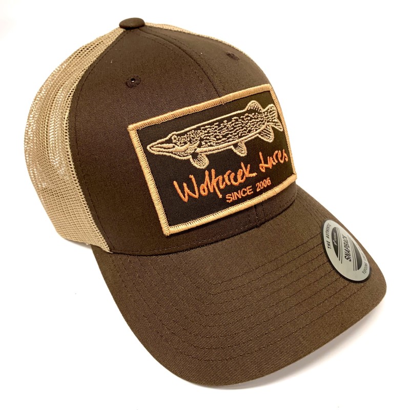 Classic Yupoong Retro Trucker 2-tone Snapback in Brown/Khaki with embroidered Pike Logo Patch.