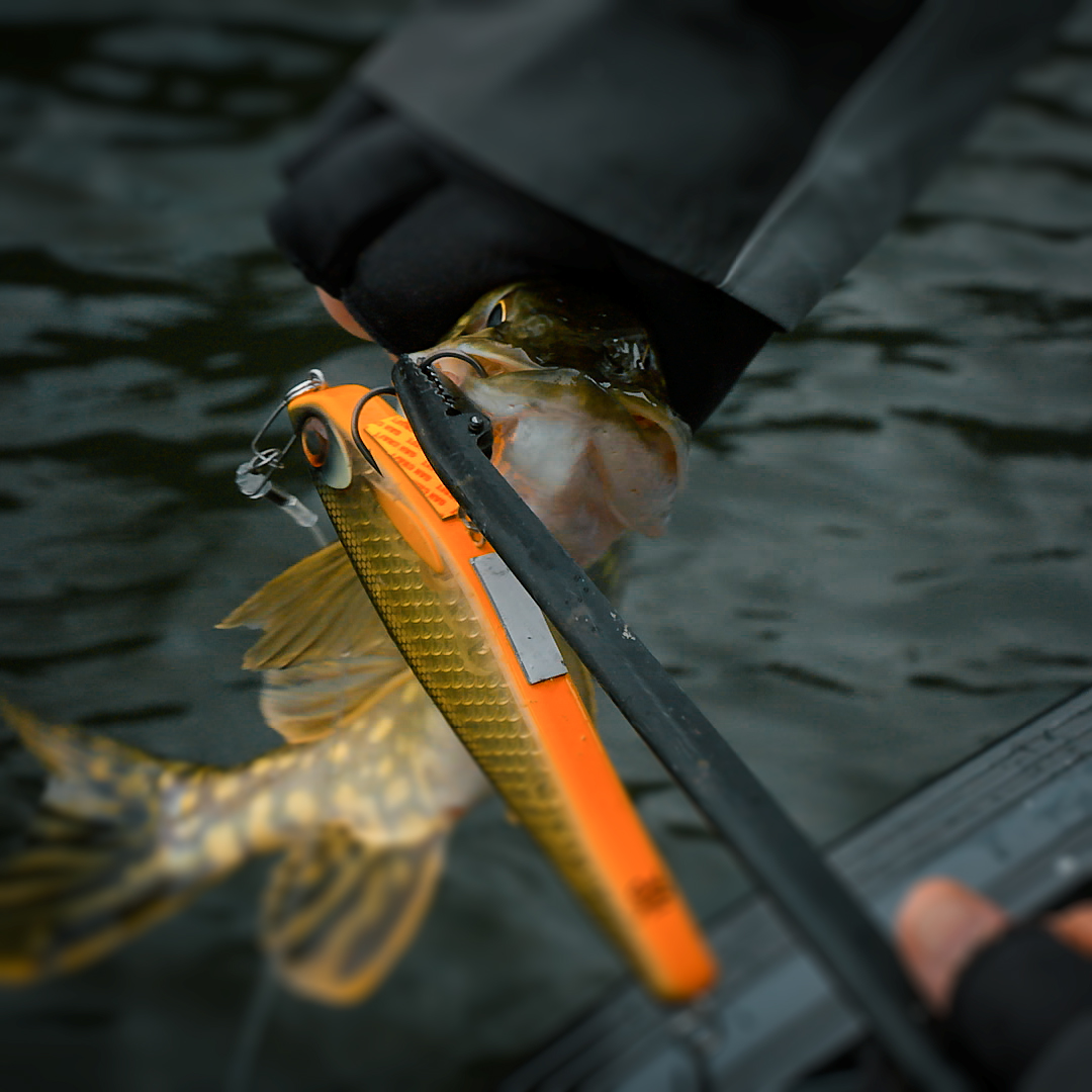 Rigging your rubber lure with a single hook and a treble hook can be a really good idea, especially if you expect to catch a lot of pike or if you don't fish the very biggest lures. You won't necessarily hook fewer fish, but you'll spare more fish.